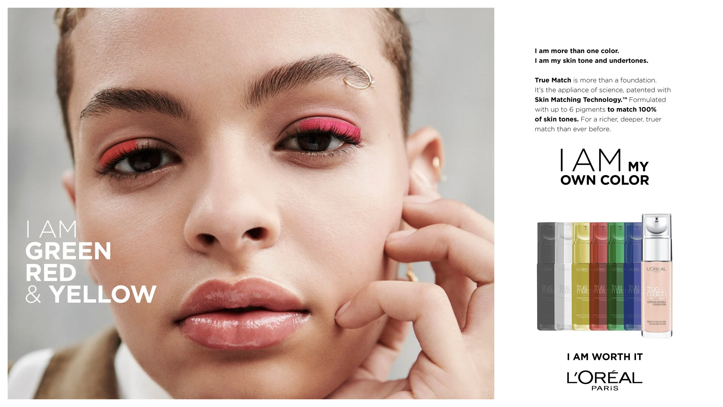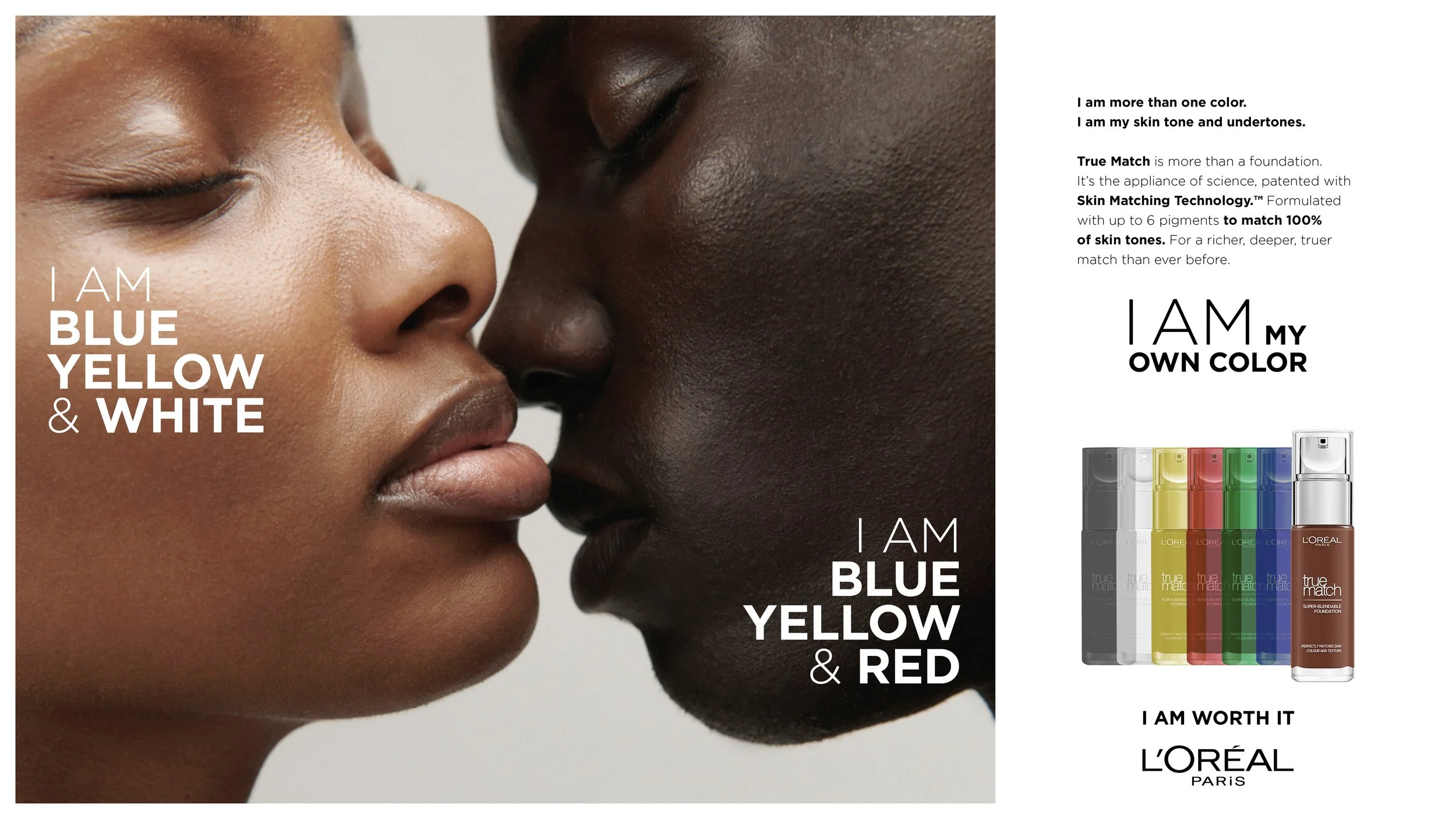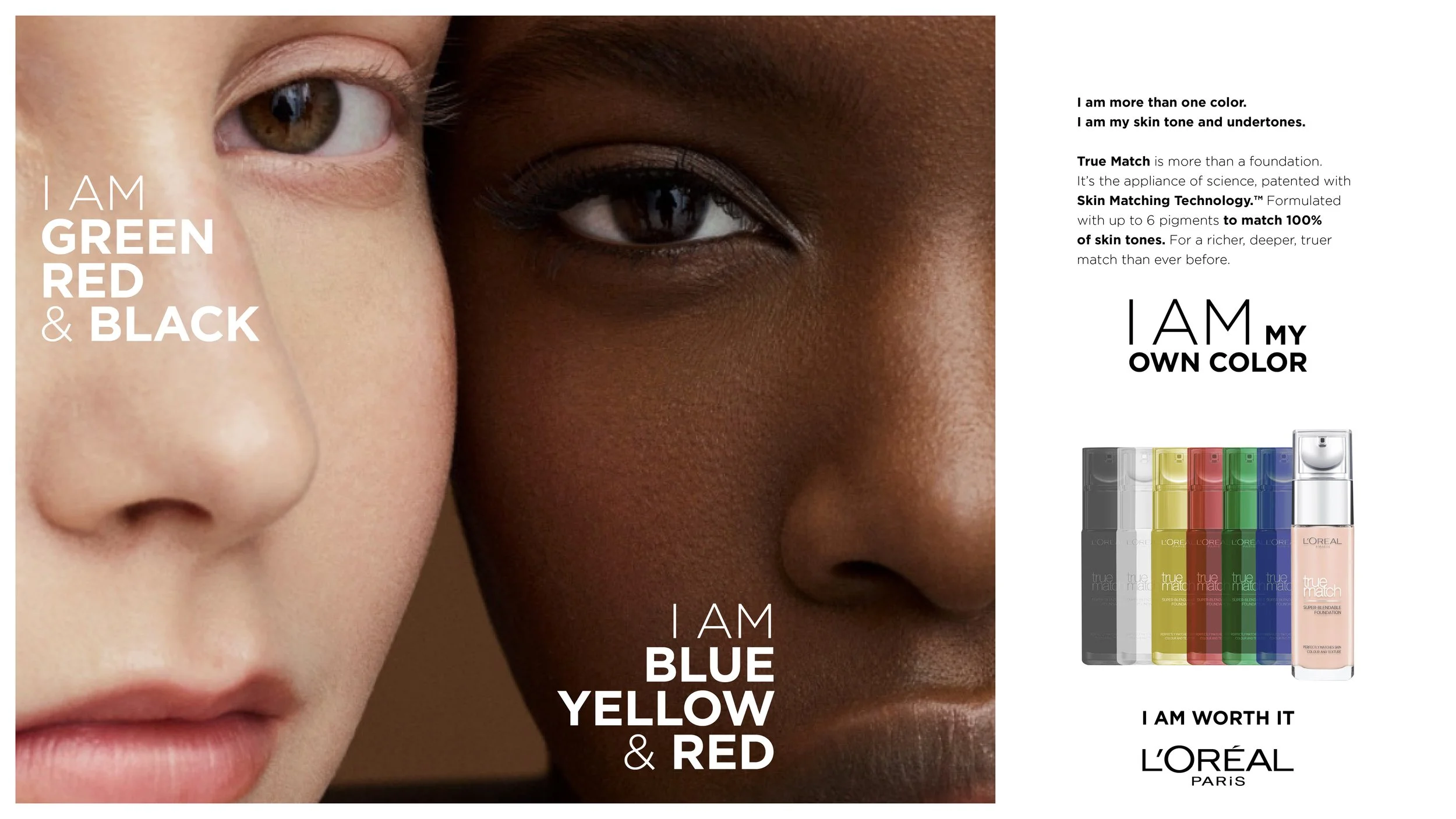 Before you can express yourself, you need to see yourself - truly. Not as black, brown or white. But as a unique, unrepeatable mix of tones and colors. Your own color. The problem? Most foundations don't see you that way. They simplify. They approximate. So L'Oréal True Match changed that.